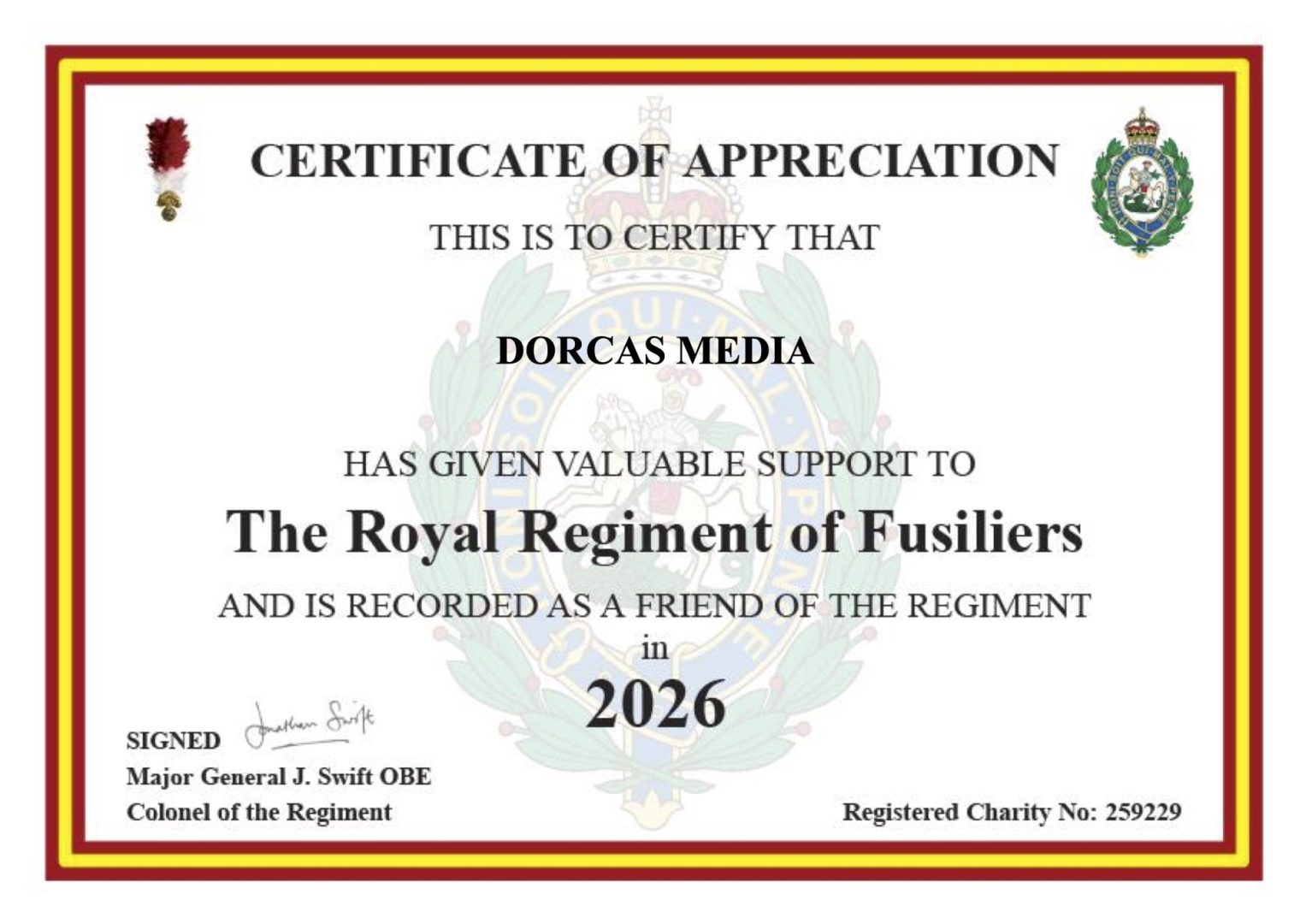 Dorcas Media/Westward Shipping News are proud to support the Royal Regiment of Fusiliers, which we have done for over several years.